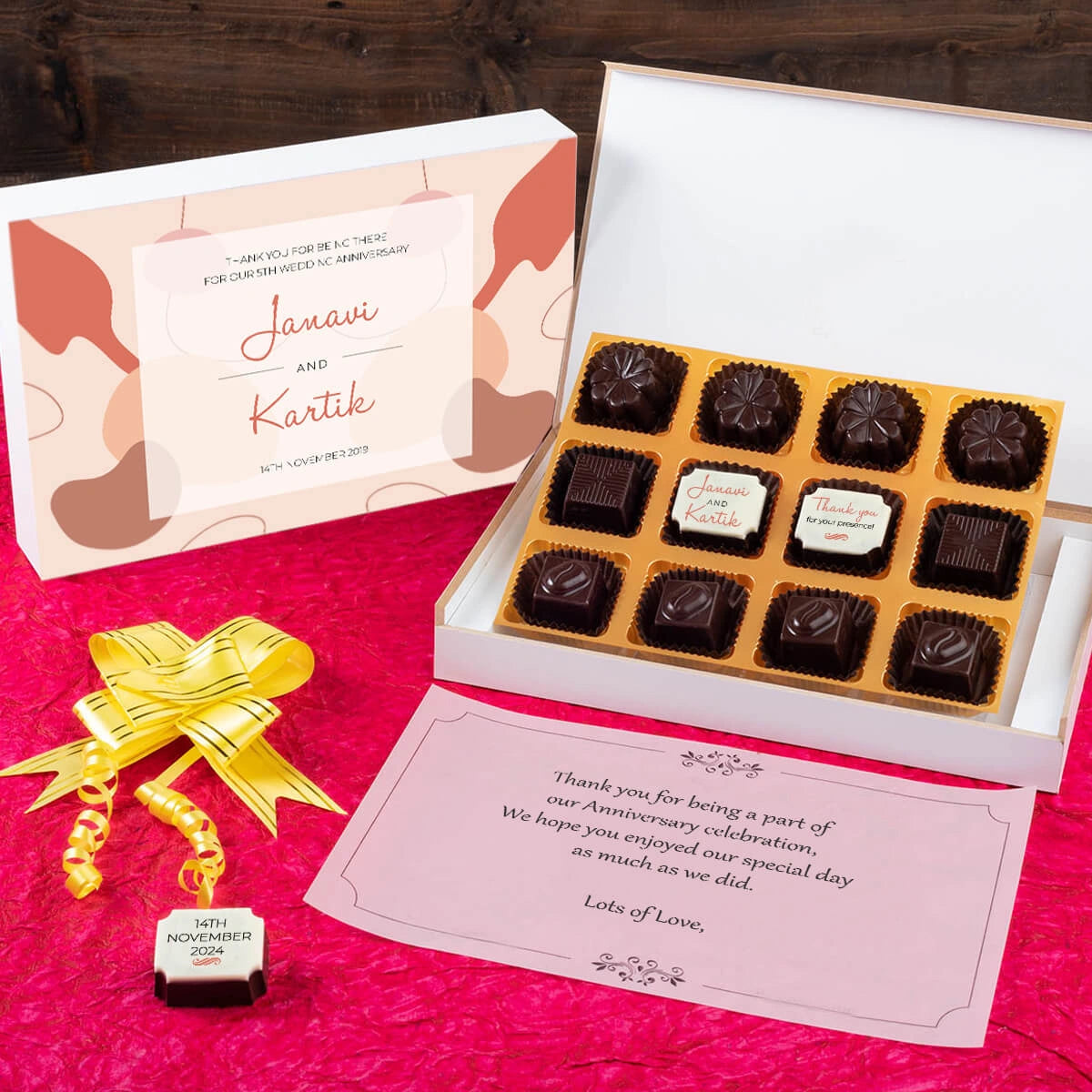 Anniversary Return Gifts - 12 Chocolate Box - Middle Two Printed Chocolates (Minimum 10 Boxes)