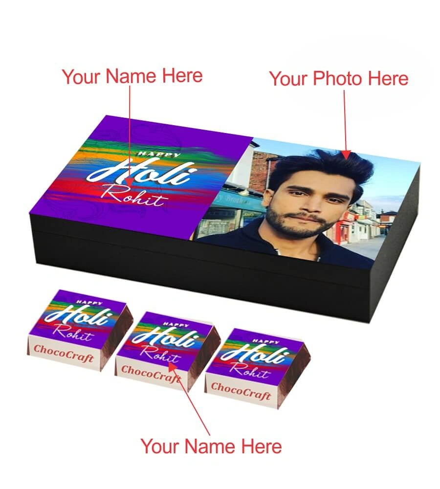 Beautiful Holi Gift Box with Personalised Wrapped Chocolates