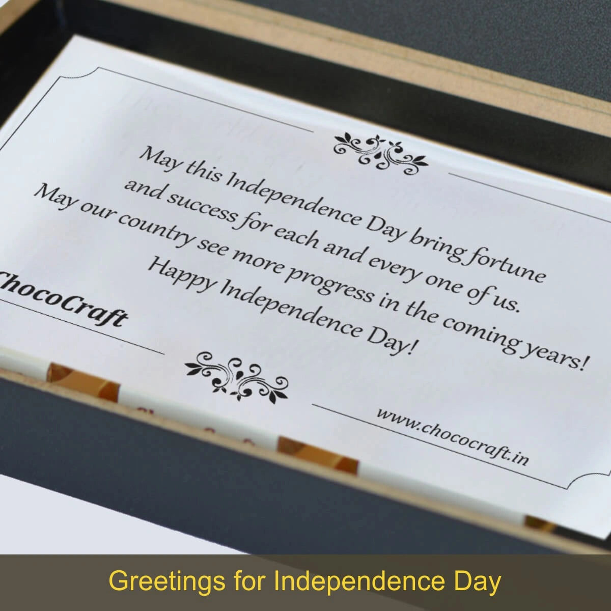 We offer printed chocolates, personalized messages, and packaging in MDF wooden boxes. We also personalize gifts for festivals and individuals with names/photos.