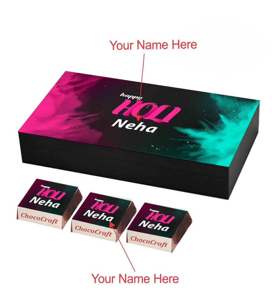 Colourful Holi Gift Box with Personalised Wrapped Chocolates