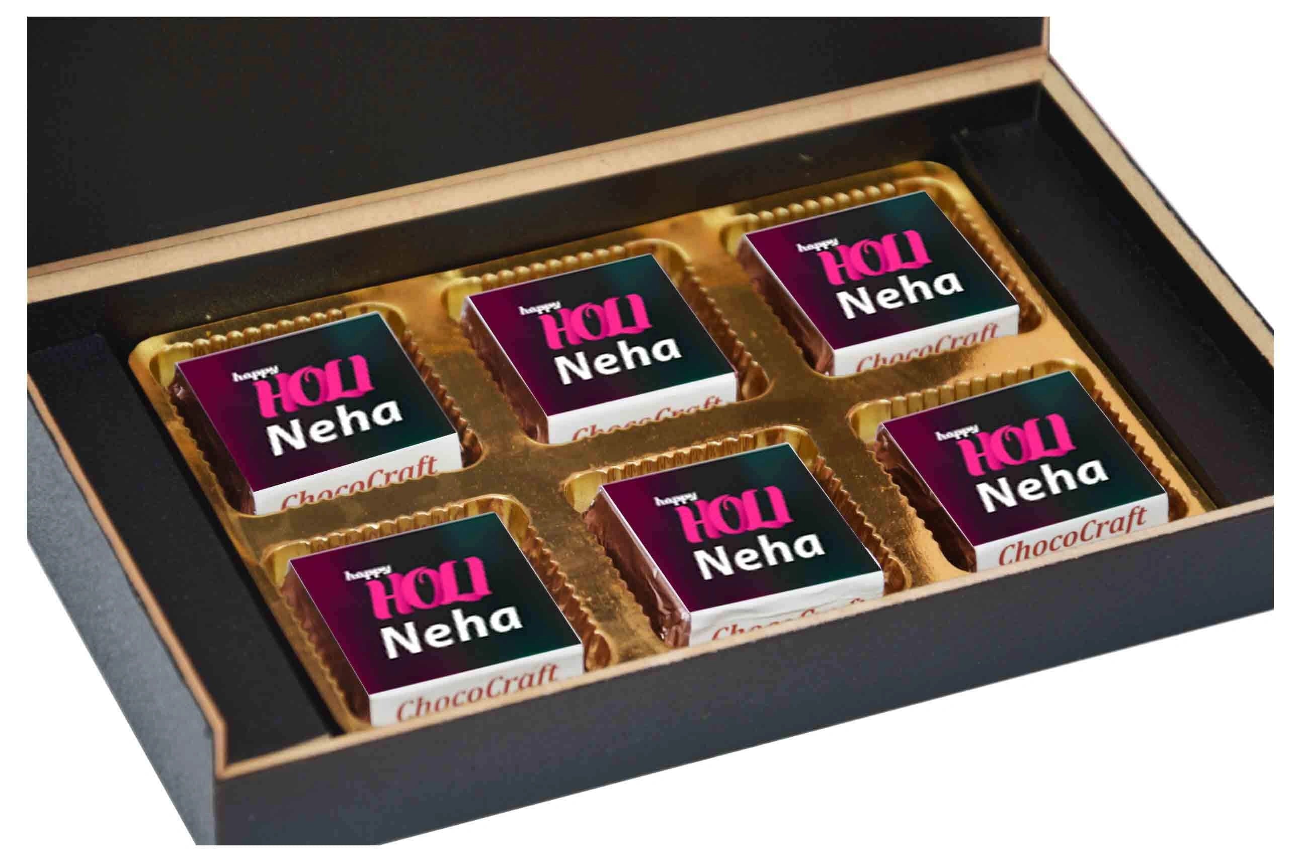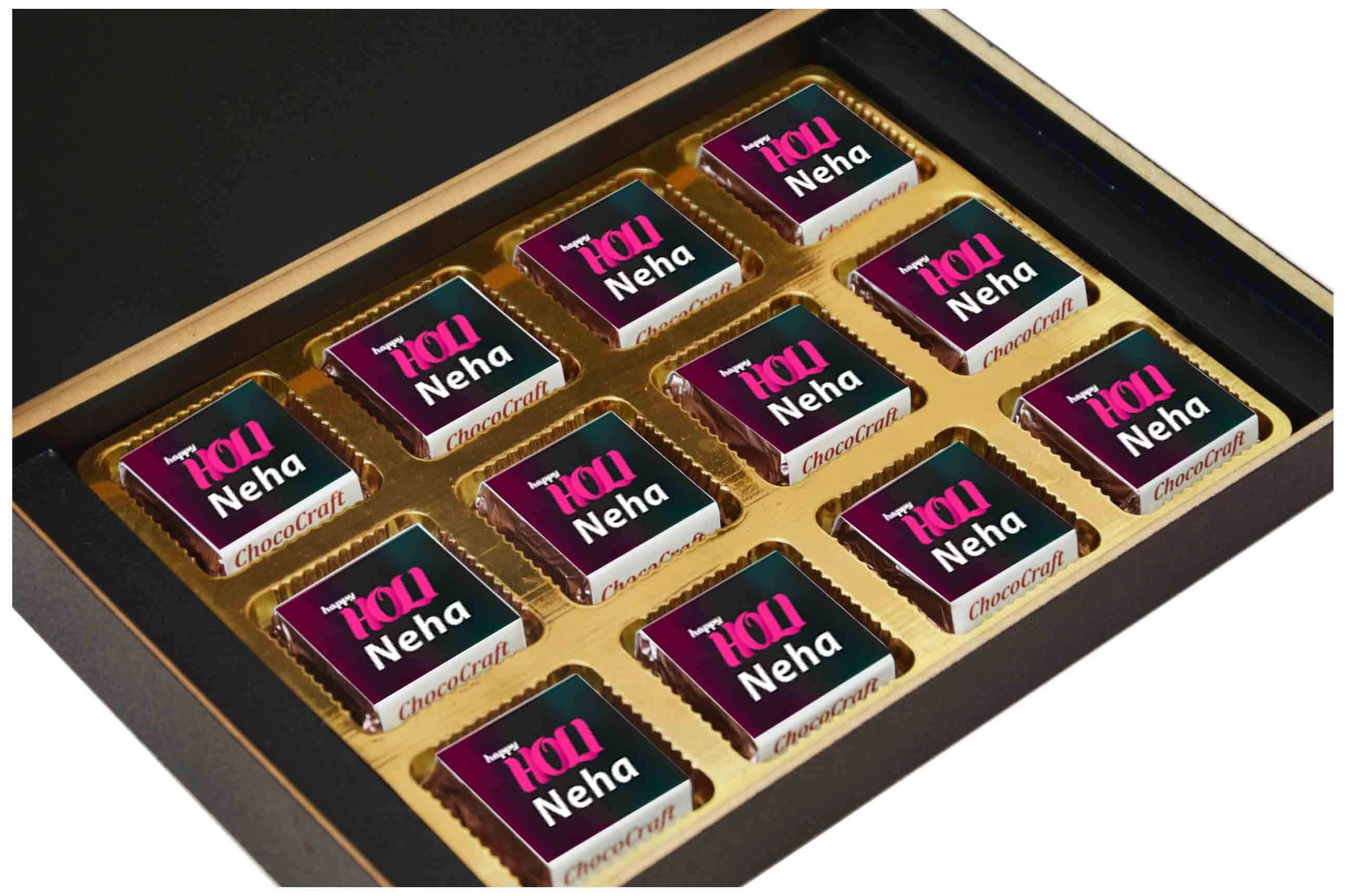 We offer printed chocolates, personalized messages, and packaging in MDF wooden boxes. We also personalize gifts for festivals and individuals with names/photos.