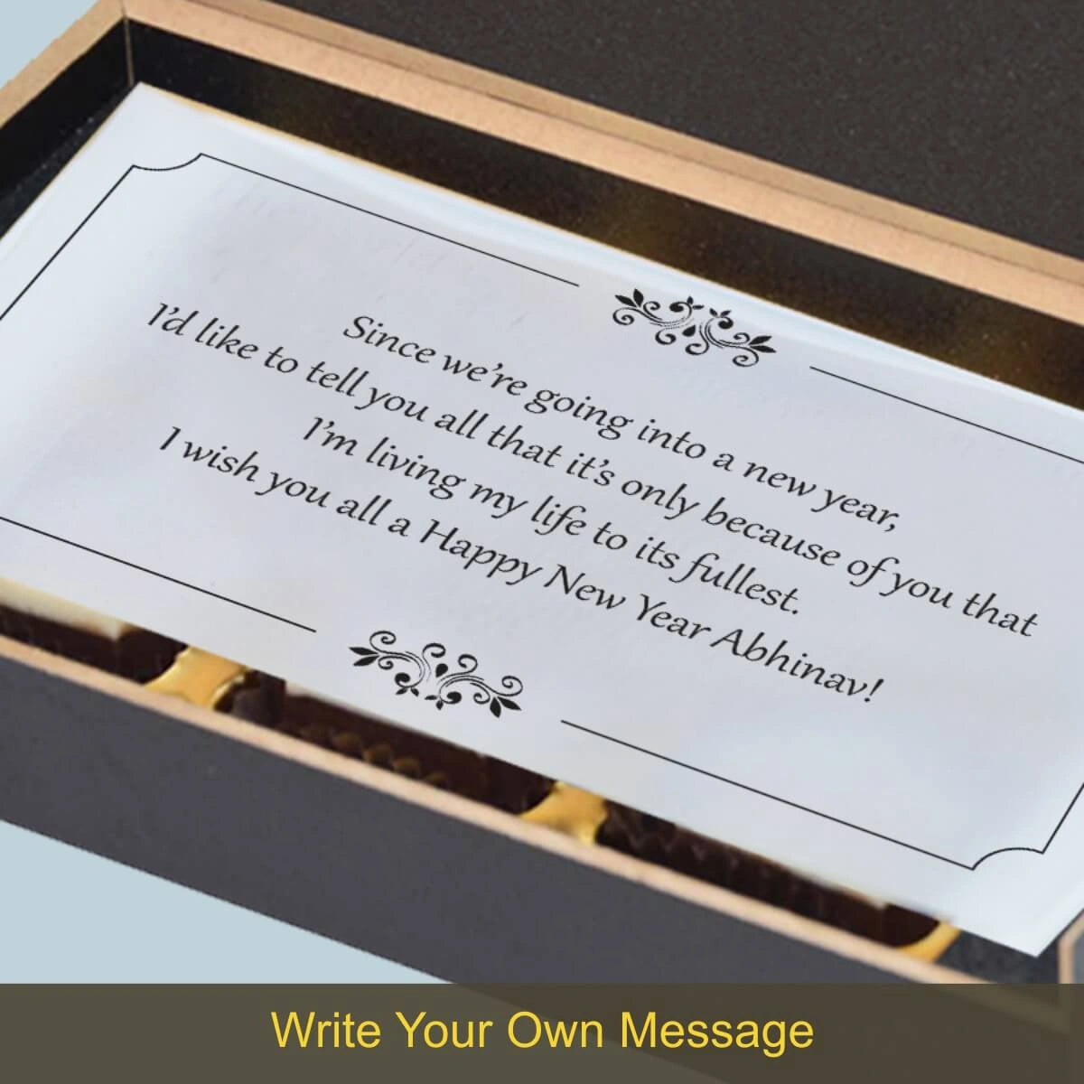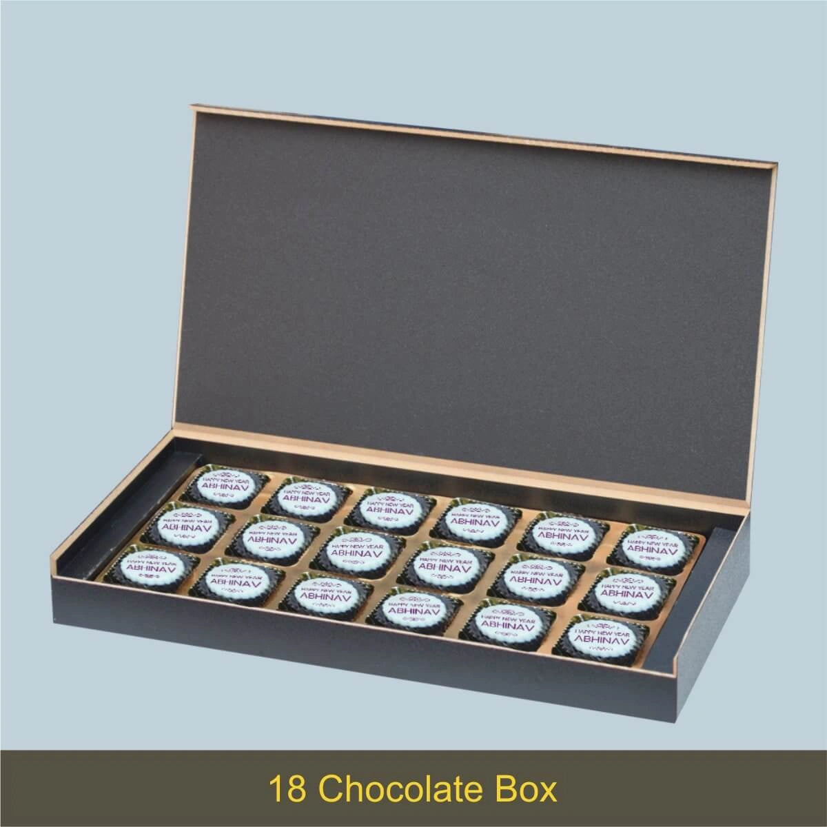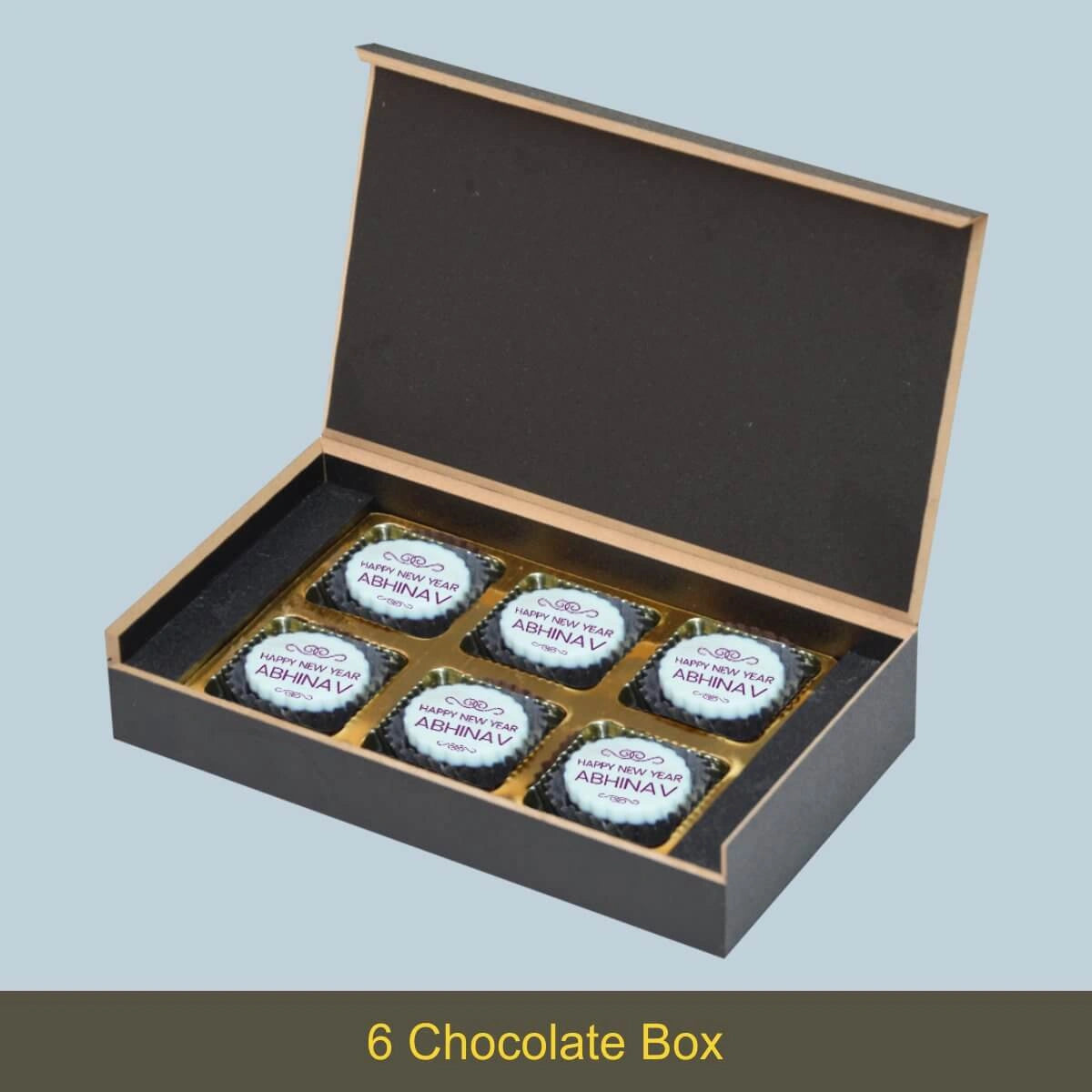 We offer printed chocolates, personalized messages, and packaging in MDF wooden boxes. We also personalize gifts for festivals and individuals with names/photos.