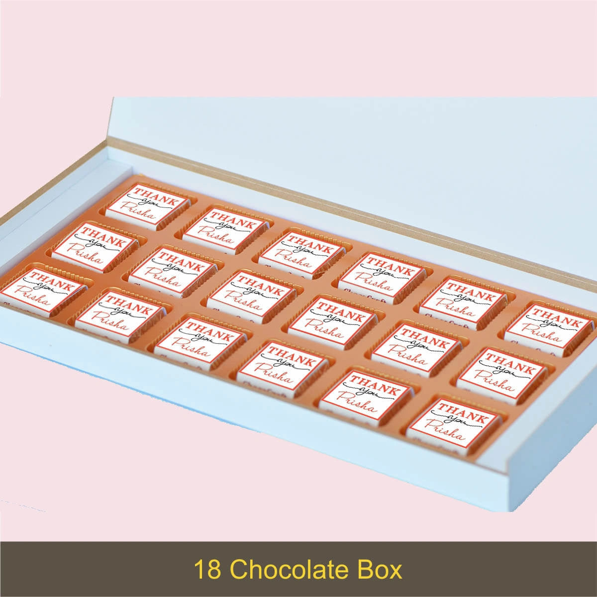 We offer printed chocolates, personalized messages, and packaging in MDF wooden boxes. We also personalize gifts for festivals and individuals with names/photos.