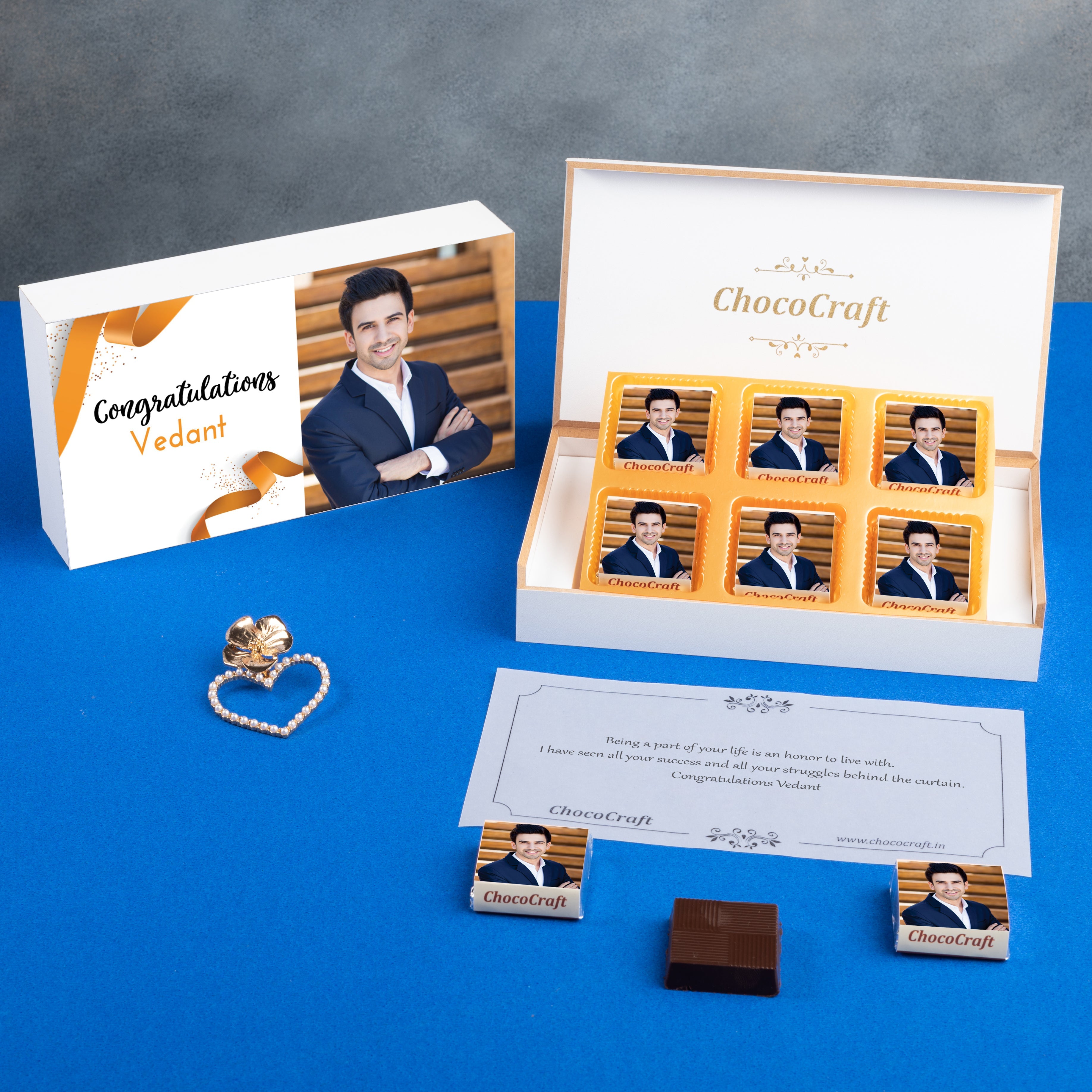 We offer printed chocolates, personalized messages, and packaging in MDF wooden boxes. We also personalize gifts for festivals and individuals with names/photos.