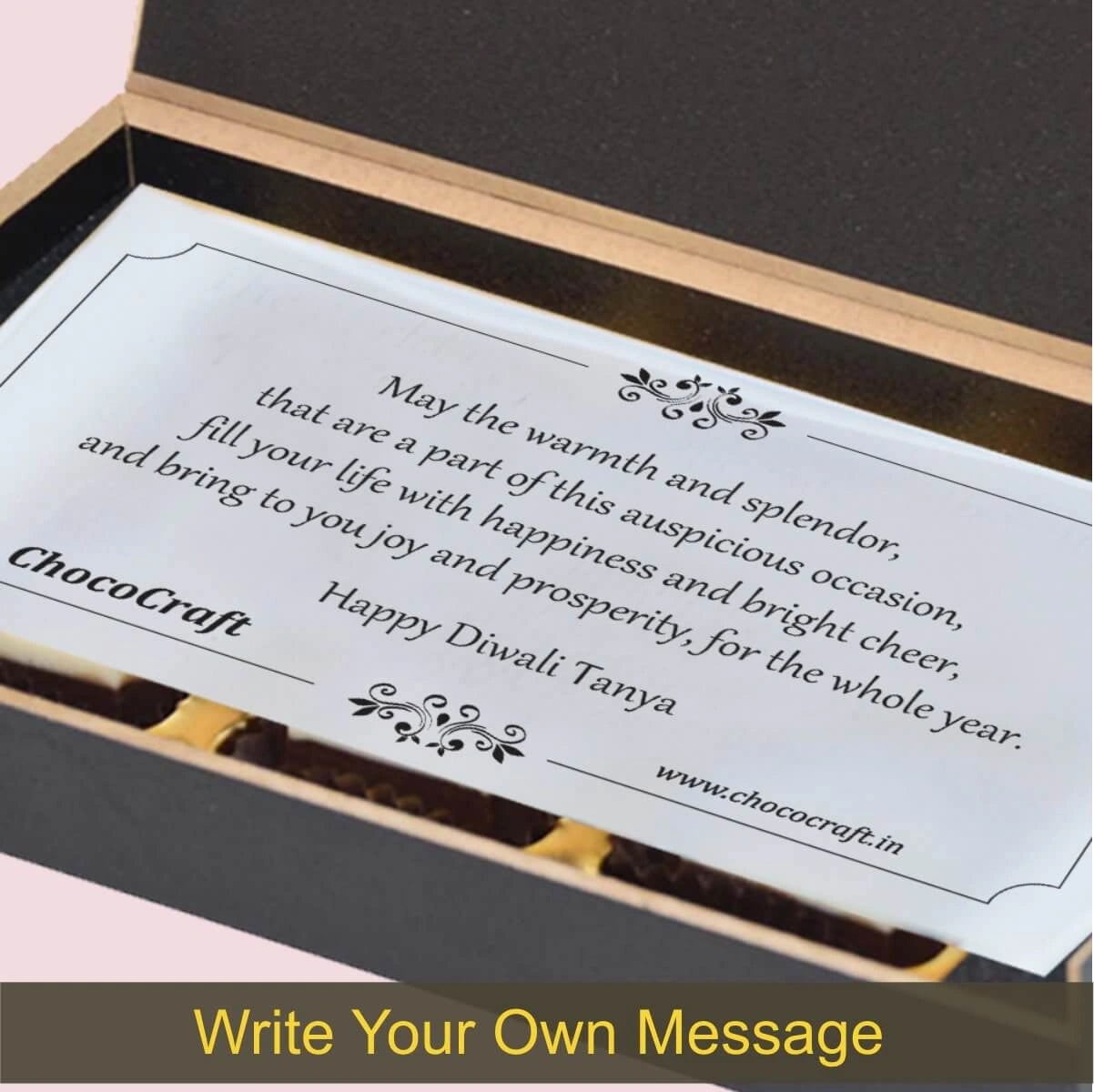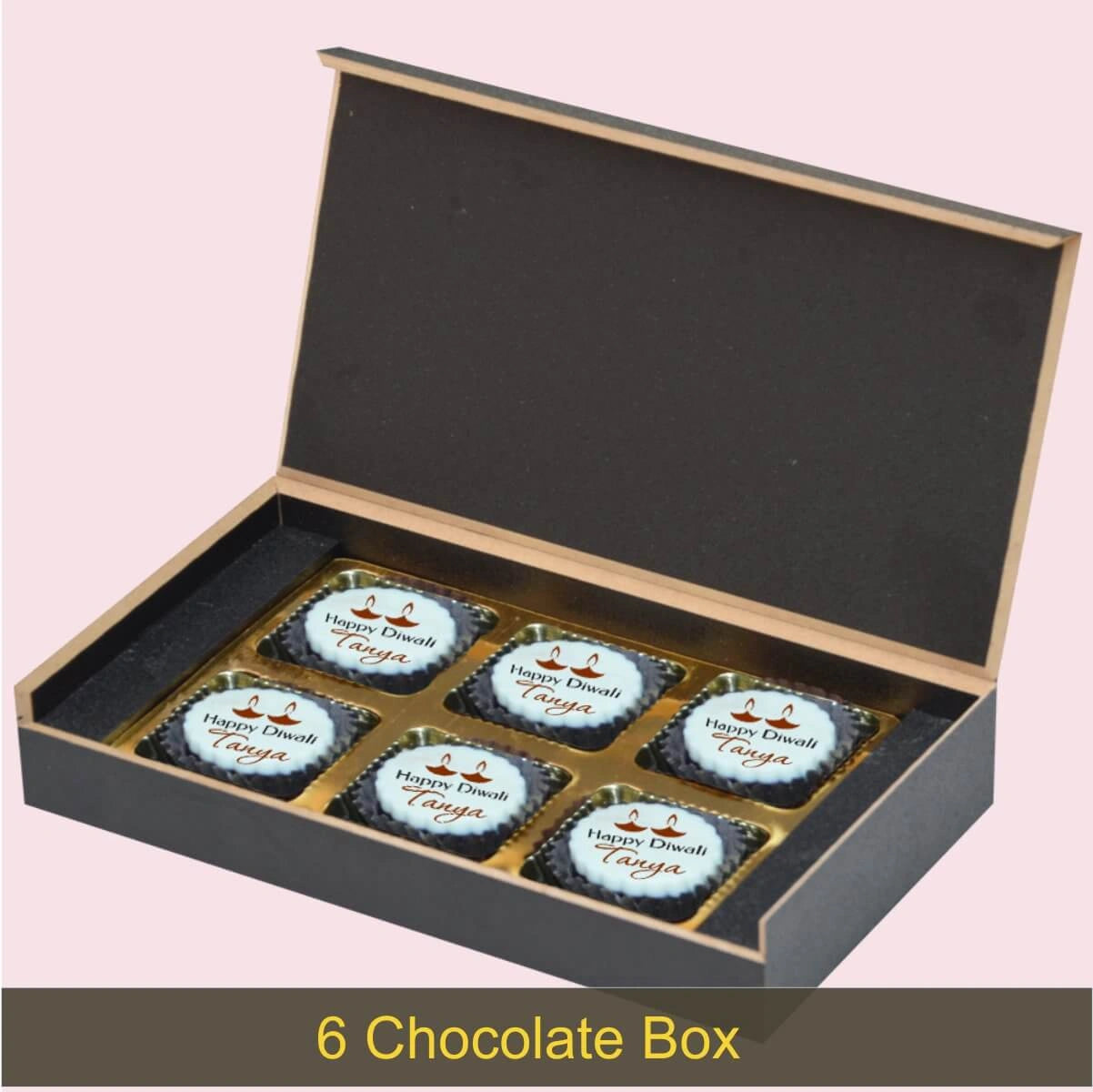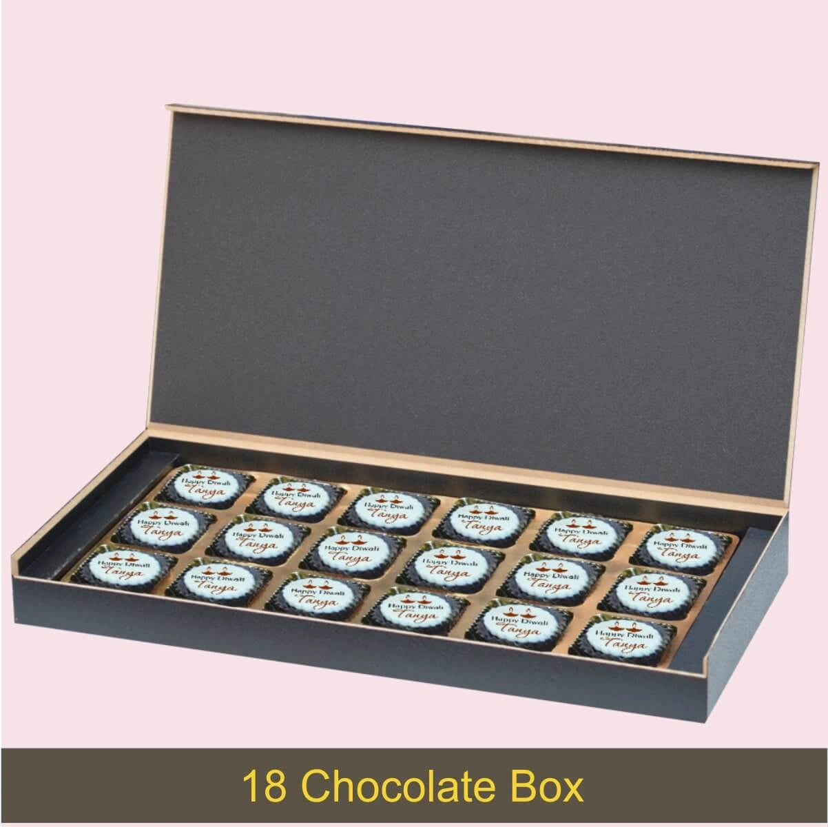 We offer printed chocolates, personalized messages, and packaging in MDF wooden boxes. We also personalize gifts for festivals and individuals with names/photos.