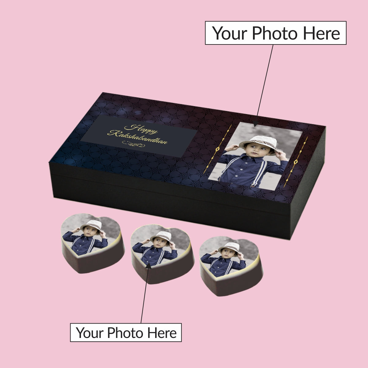 • Please upload photo to be printed on the box and chocolates.