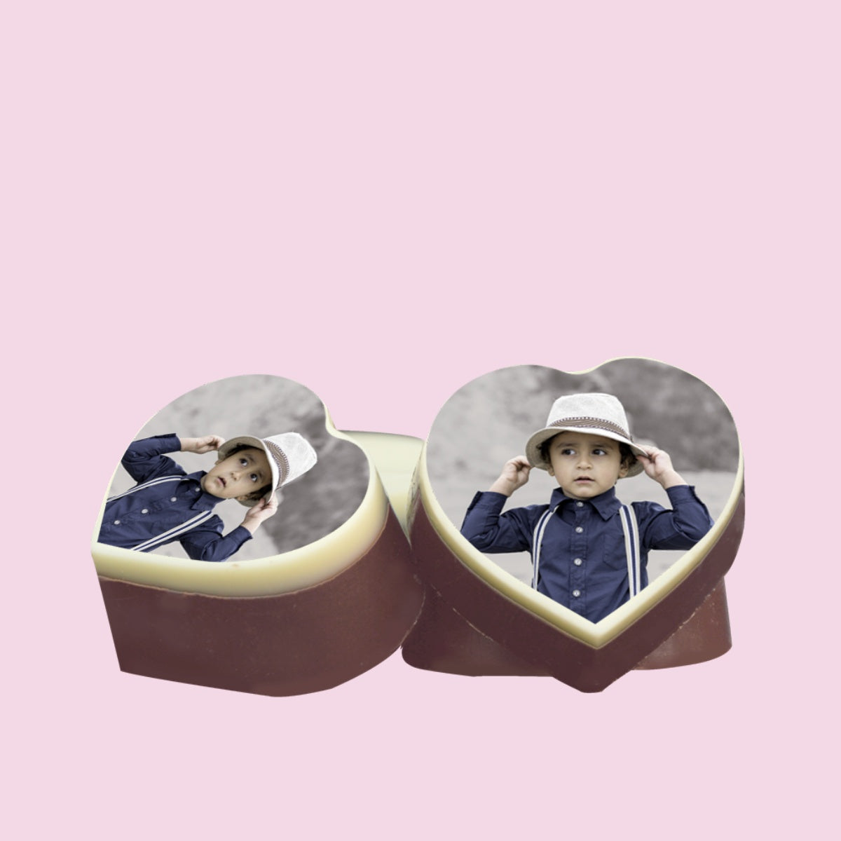 • Print on Chocolates - Edible ink is used to print on the chocolates. It is safe for consumption. The chocolates are made from a combination. Top layer is white chocolate while the bottom layer is dark chocolate.