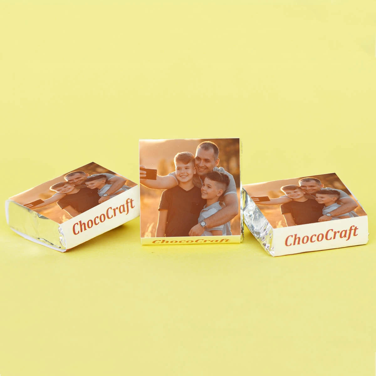 Chocolate Wrapper Photo printed on the wrapper as shown in the product photo.