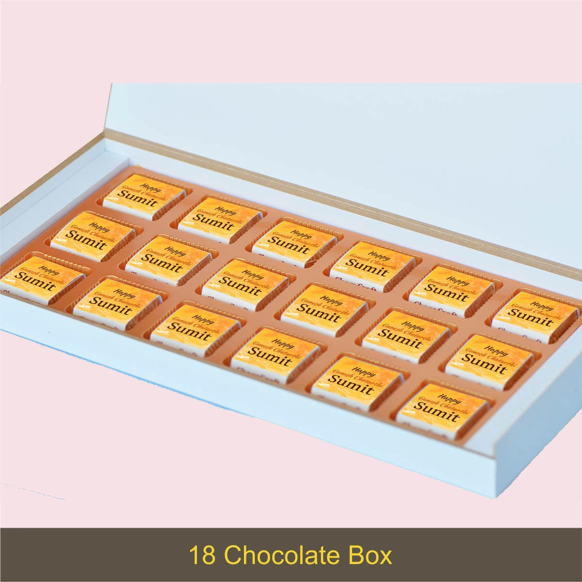 We offer printed chocolates, personalized messages, and packaging in MDF wooden boxes. We also personalize gifts for festivals and individuals with names/photos.