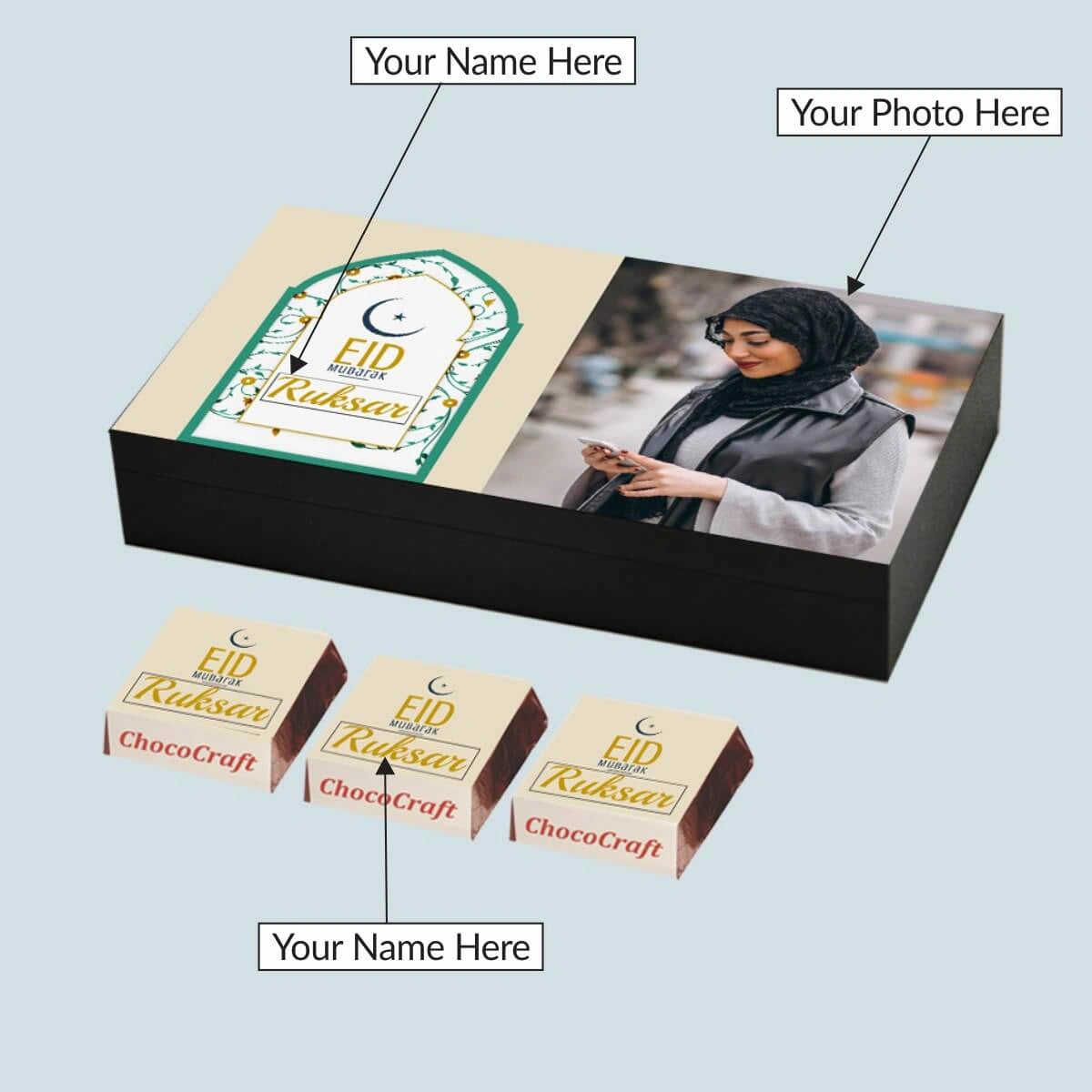 Personalised Gift Box for Eid with Wrapped Chocolates