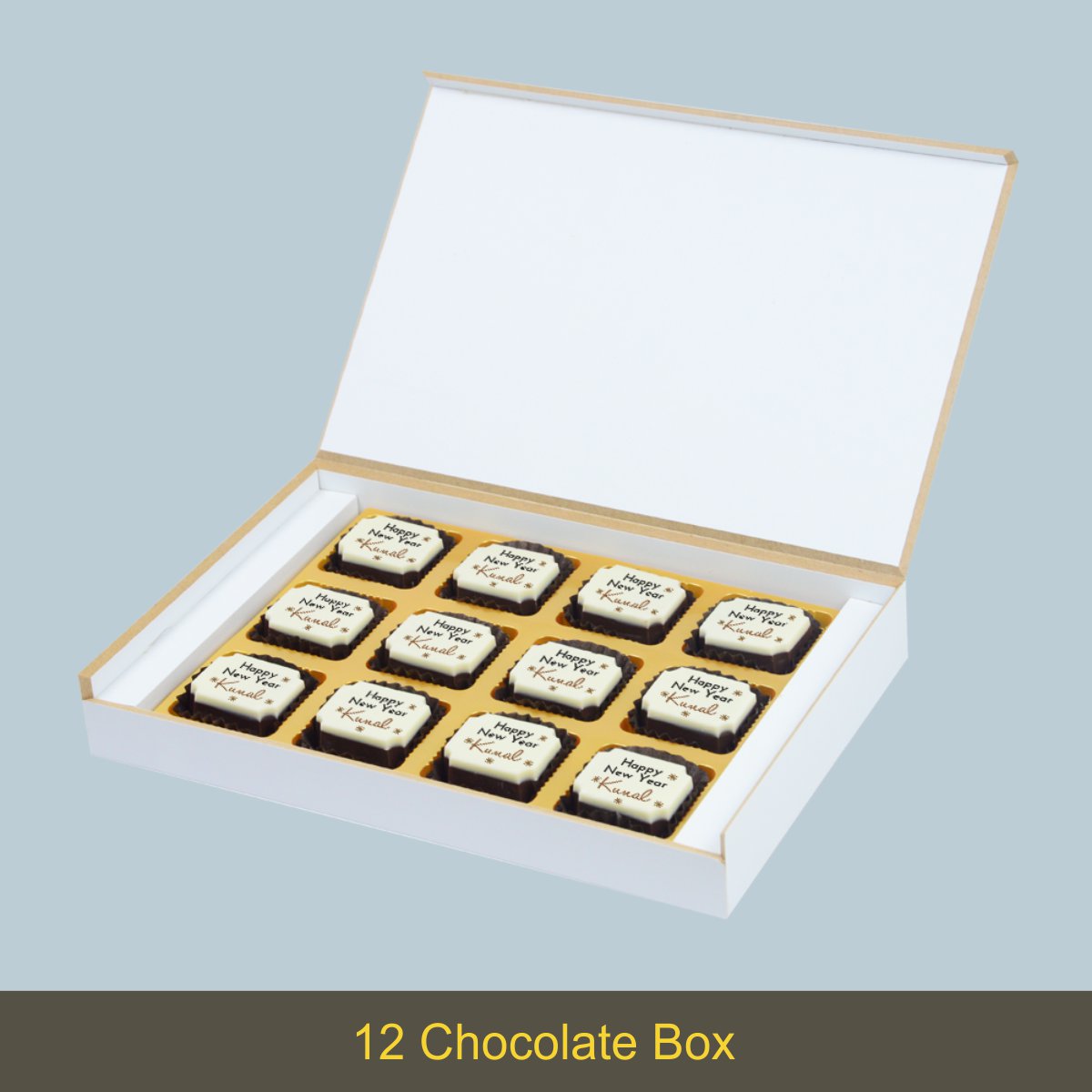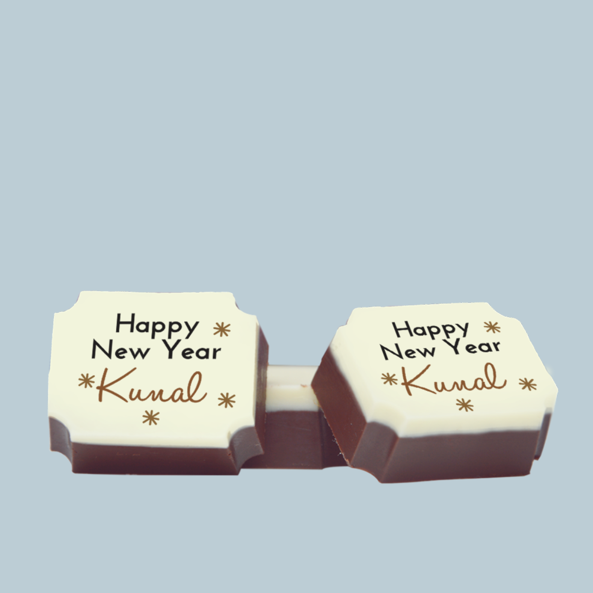 • Print on Chocolates - Edible ink is used to print on the chocolates. It is safe for consumption. The chocolates are made from a combination. Top layer is white chocolate while the bottom layer is dark chocolate.