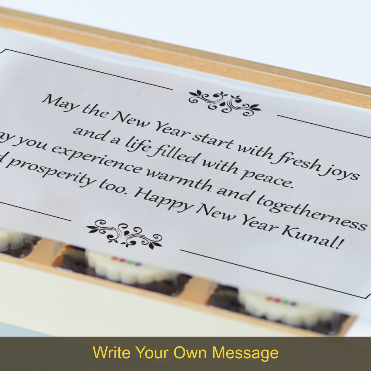 • Message on Butter Paper: You can also give us a message to be printed and placed inside the box. Please note that it is not possible to print emojis and other symbols. Use plain text only.