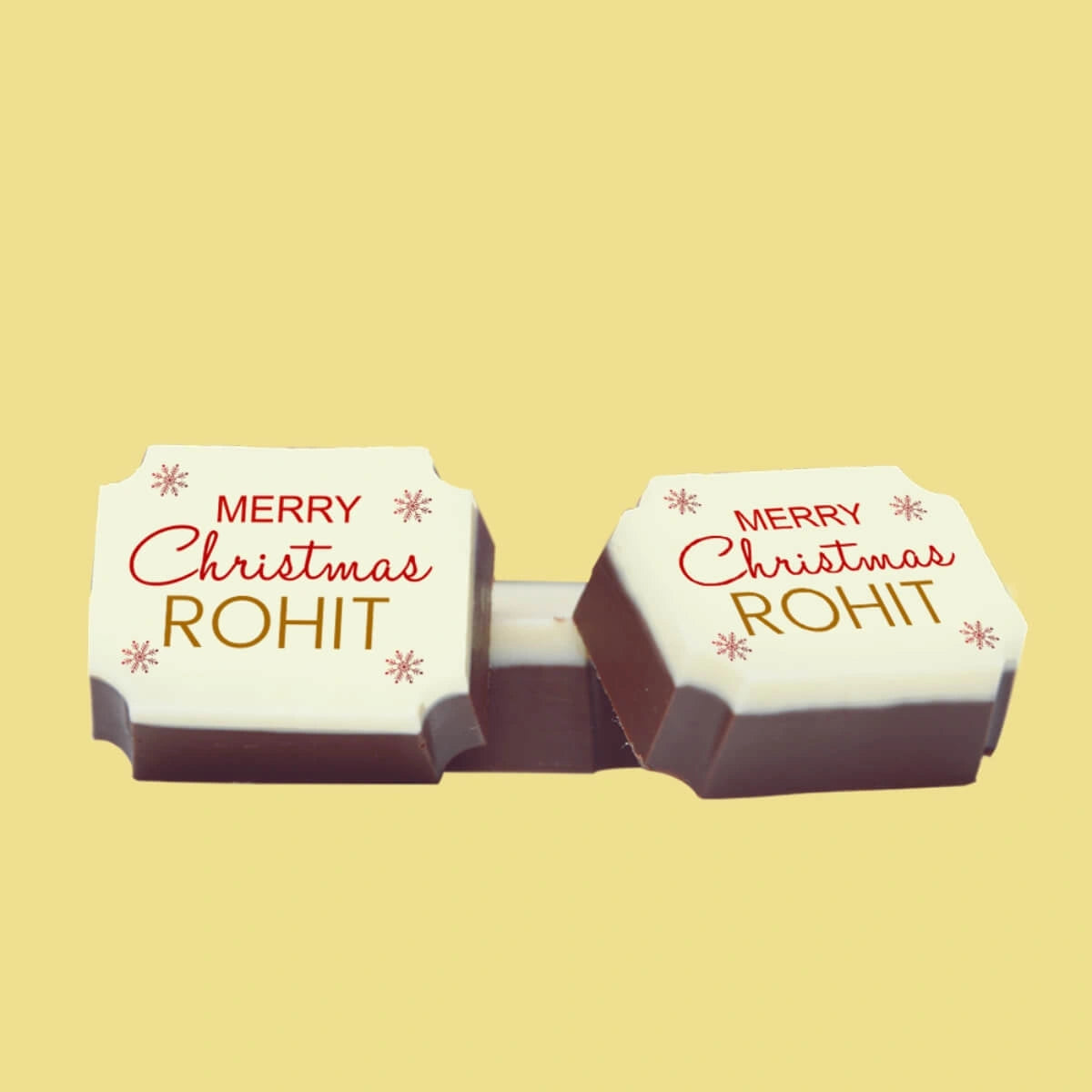 Printed Chocolate Name printed on the chocolate as shown in the product photo.