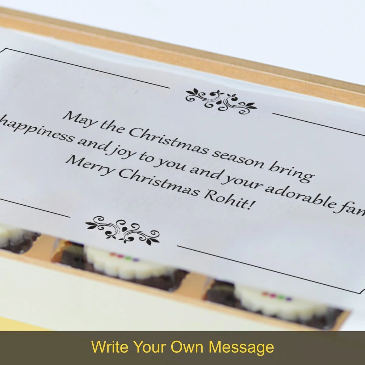 We offer printed chocolates, personalized messages, and packaging in MDF wooden boxes. We also personalize gifts for festivals and individuals with names/photos.