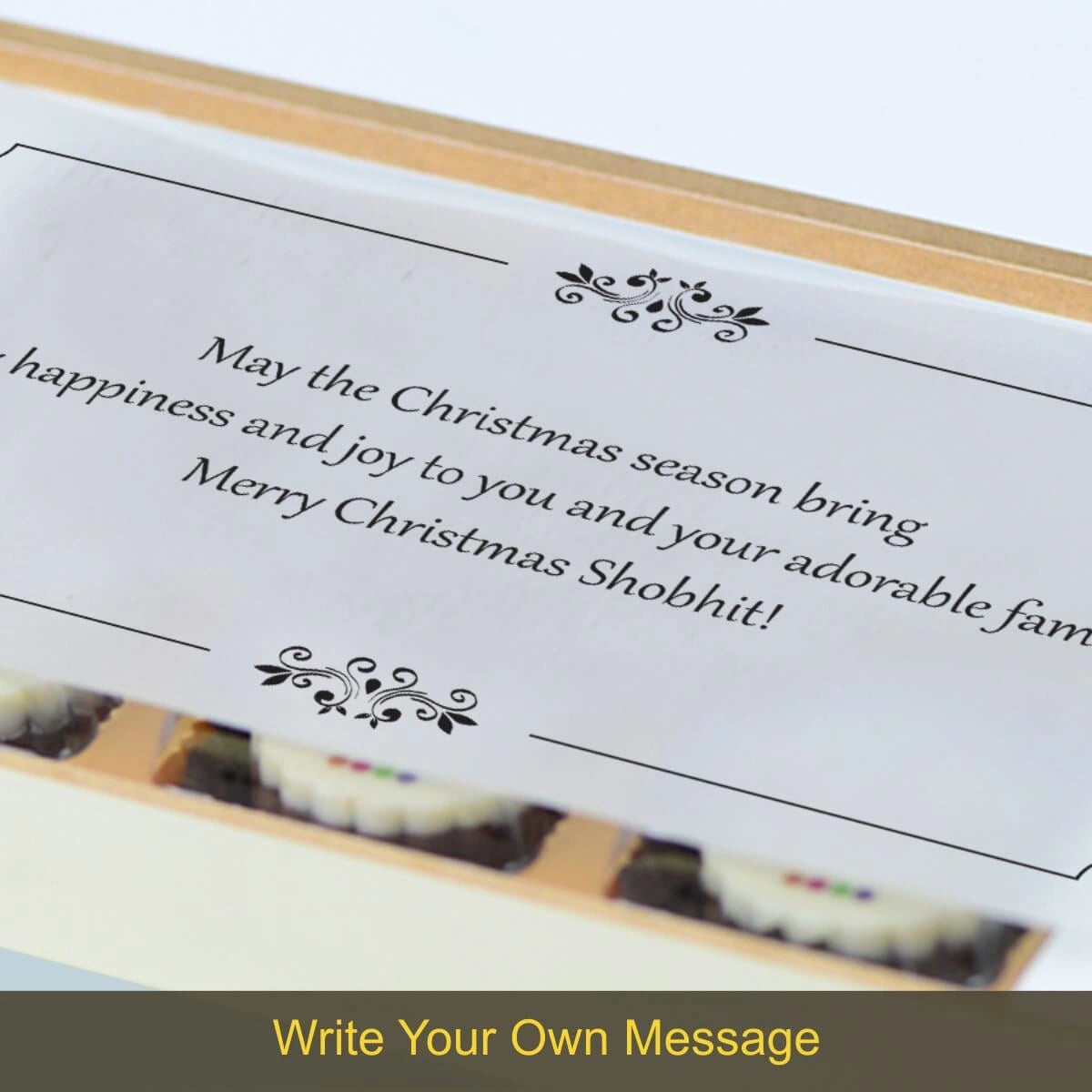 We offer printed chocolates, personalized messages, and packaging in MDF wooden boxes. We also personalize gifts for festivals and individuals with names/photos.