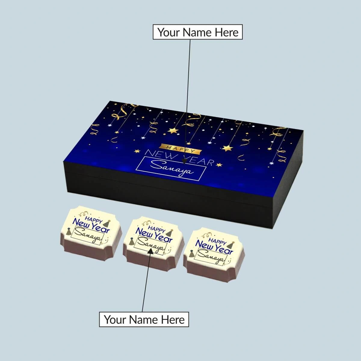 Sparkling Stars Design New Year Gift Box with Printed Chocolates