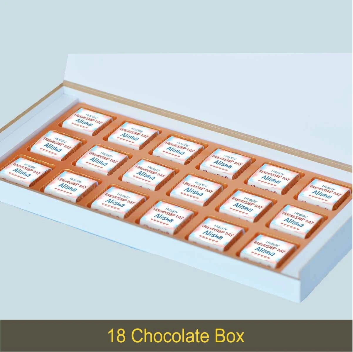 We offer printed chocolates, personalized messages, and packaging in MDF wooden boxes. We also personalize gifts for festivals and individuals with names/photos.