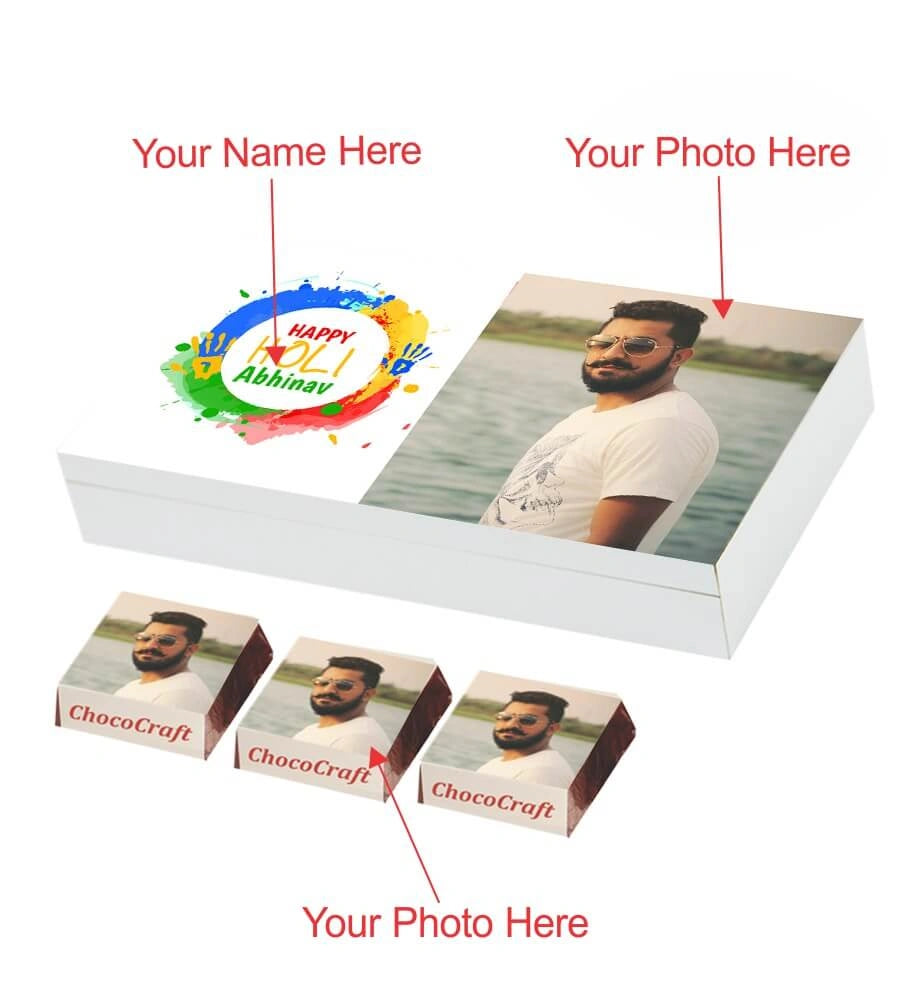 Special Holi Gift Box with Personalized Wrapped Chocolates