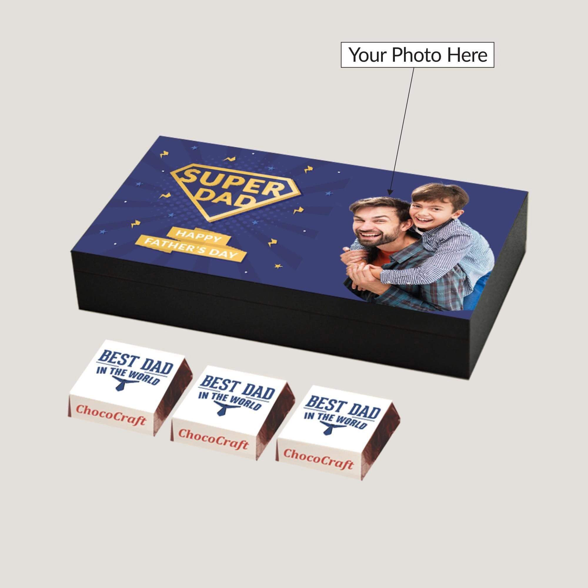 Name & Photo Upload the photo for the box. Provide the name for printing on the box and chocolate wrapper.